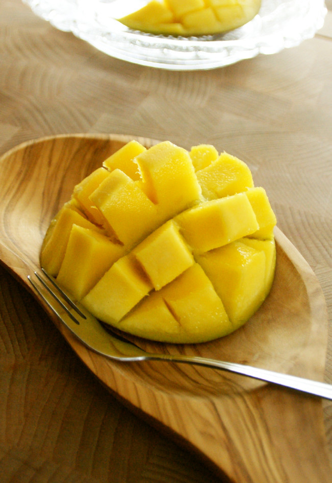 生で食べるのはもちろん、プリンやアイスなどにしても美味しいです。 今回は生で食べる際に食べやすい切り方のご紹介にしてい マンゴーの細い部分を立てて置きます。 中心1cm幅に大きな幅の種が入っています。 ②真ん中の種を切らないようにしながら、種にそって3.